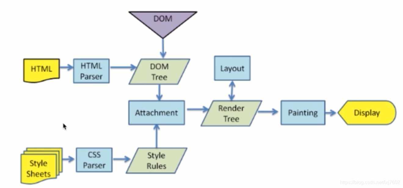 当各种盒子的位置、大小以及其他属性,例如颜色、字体大小等都确定下来后,浏览器于是便把这些元素都按照各自的特性绘制了一遍,于是页面的内容出现了,这个过程称之为repaint。