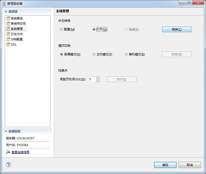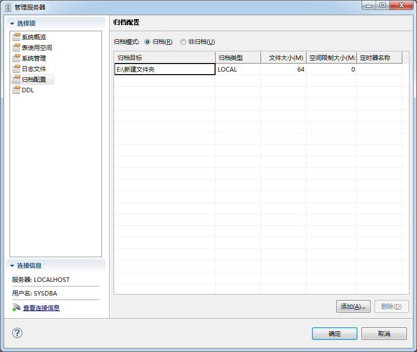 点击“开始-所有程序-达梦数据库-客户端-DM管理工具”,连接需要备份的数据库实例。连接好后,右键点击“管理服务器”,点击“系统管理”,点击“配置”后点击“转换”,点击“归档配置”,选择“归档”,添加归档目标,点击确认,右键点击“管理服务器”,点击“系统管理”,点击“打开”后点击“转换”,点击确定。