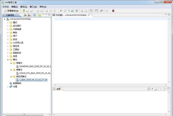 备份完成后,点击库备份,表备份,表空间备份会出现备份的文件。
