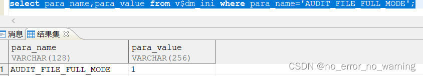 select para_name,para_value from v$dm_ini where para_name='AUDIT_FILE_FULL_MODE';