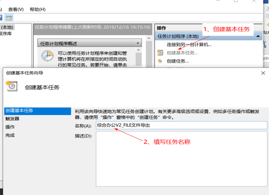 2、将生成的bat语句添加到本机操作系统的“任务计划”中