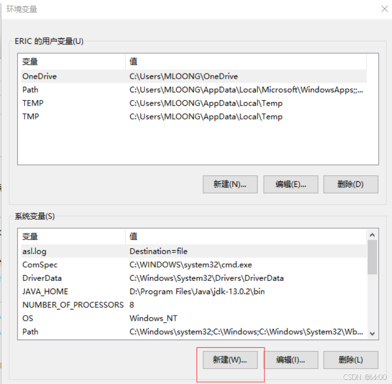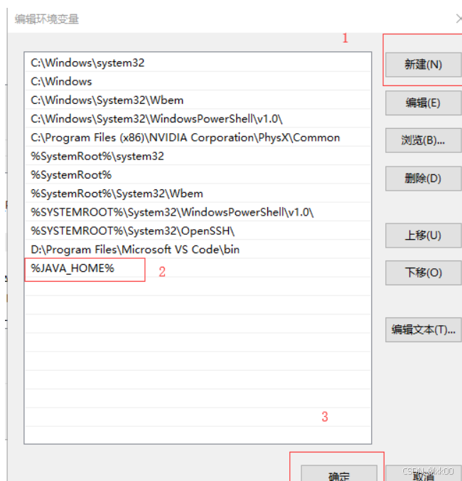 6.点击编辑,输入先前新建的变量名,即输入“%JAVA_HOME%”,点击确定