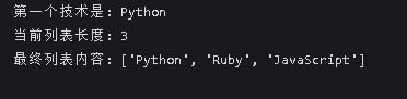 最终列表内容: [‘Python’, ‘Ruby’, ‘JavaScript’]