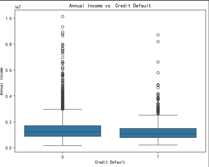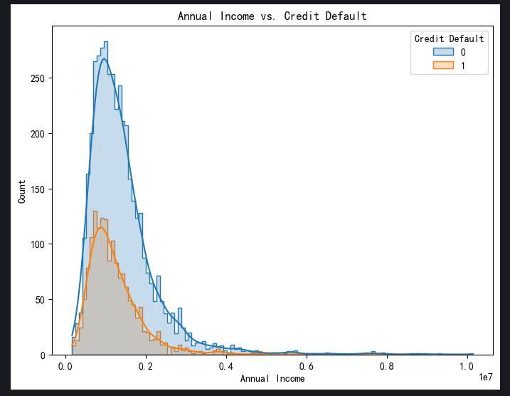 7.绘制Annual Income与Credit Default关系图 可直观展现二者变动