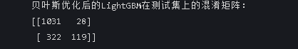 print("贝叶斯优化后的LightGBM在测试集上的混淆矩阵:")