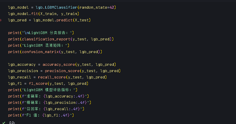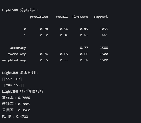 print("\n网格搜索优化后的lightgbm 在测试集上的分类报告:")