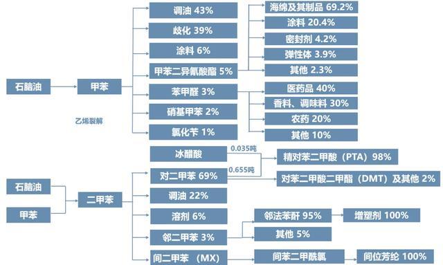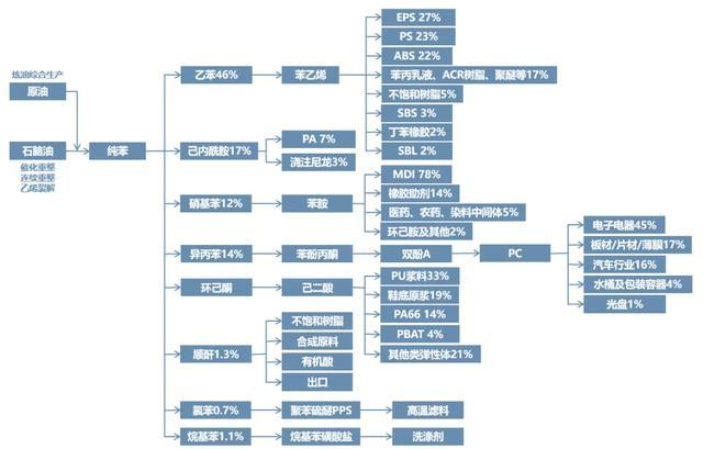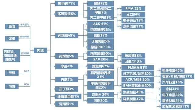 化工产业链的结构通常可以分为三个主要部分:上游原材料供应、中游生产加工和下游产品应用。上游原材料供应包括石油、天然气、煤炭的开采以及石油的冶炼、煤化工等;中游包括中间产品以及衍生品的生产;下游则是终端需求,包括汽车、医疗、农业、服装等行业。