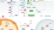 SIRT1 deacetylates numerous substrates, including NF-κB, p53, and PGC-1α23,24,25. To explore whether SIRT1 specifically deacetylates NAMPT rather than other substrates under nicotine treatment, we performed the precipitation of NF-κB, p53, and PGC-1α with SIRT1 and acetylation-lysine, and found that nicotine (10 ng/mL) did not increase the SIRT1 binding or the deacetylation level of NF-κB, p53, and PGC-1α (Fig. 5d). Therefore, nicotine specifically mediates SIRT1-NAMPT interaction to drive NAD+ synthesis.