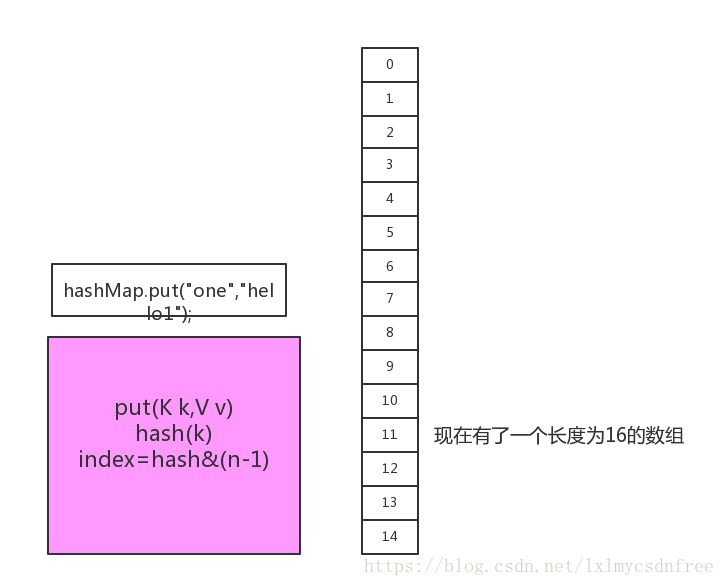3、继续来看上面的源码line3,line3和line2一样,而且数组不为空直接hash(key)和index。所以直接看图了