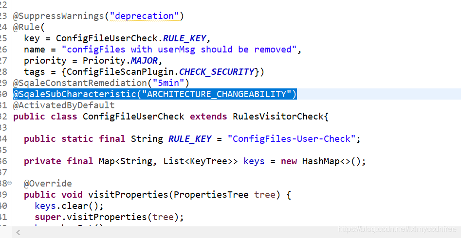 在规则上面添加 @SqaleSubCharacteristic("ARCHITECTURE_CHANGEABILITY")