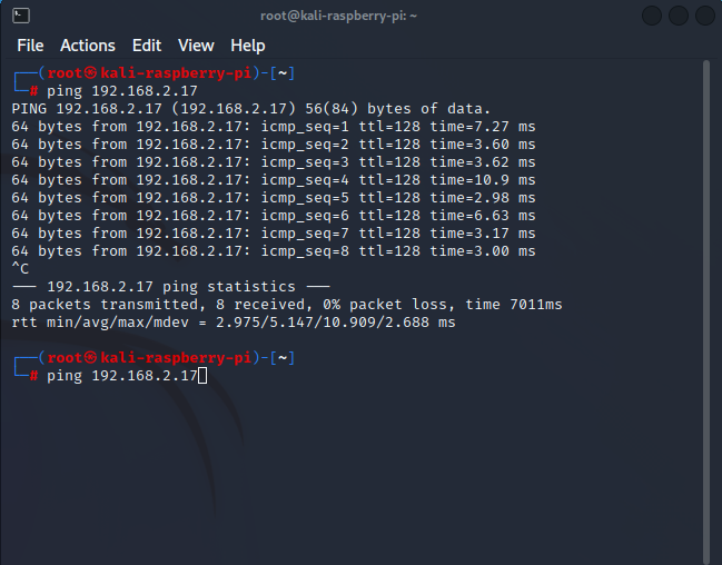 kali-linux-2022.3-raspberry-pi-arm64 互 ping 成功