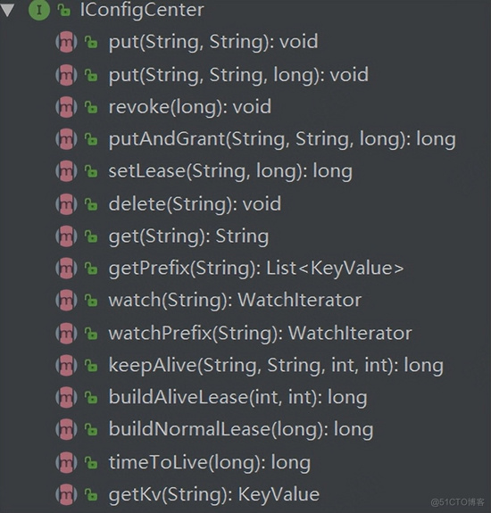 通过其configCenter()方法获取创建etcd实例对象,IConfigCenter接口封装了etcd实例对象的行为(包括基本的crud、监控、续约等)