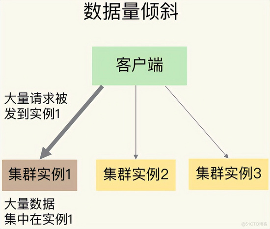 如图,虽然每个集群实例上的数据量相差不大,但是某个实例上的数据是热点数据,被访问得非常频繁。