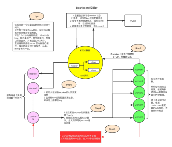 2)client端jar包就是在服务中添加的引用jar,引入后,就可以以便捷的方式去判断某key是否热key。同时,该jar完成了key上报、监听etcd里的rule变化、worker信息变化、热key变化,对热key进行本地caffeine缓存等。