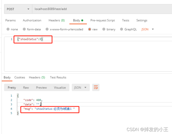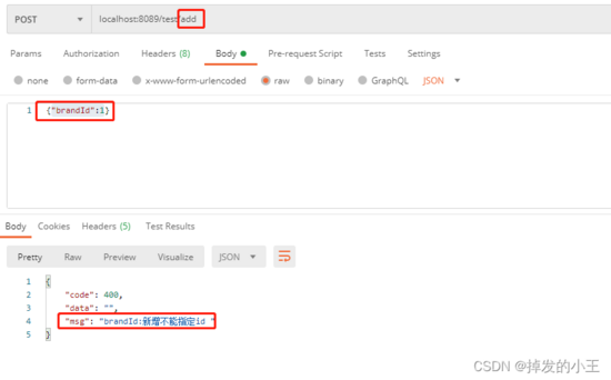 注意:我们上面做了分组,如果属性不指定分组,则不会生效,现在我们的部分属性校验已没有起作用,现在只有 brandId和showStatus 起作用。