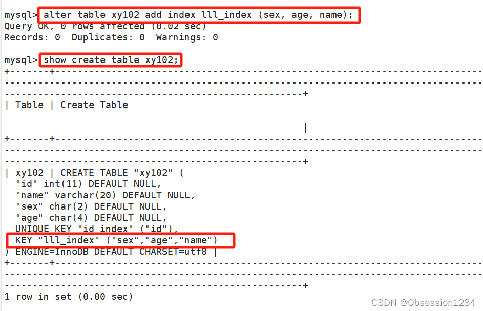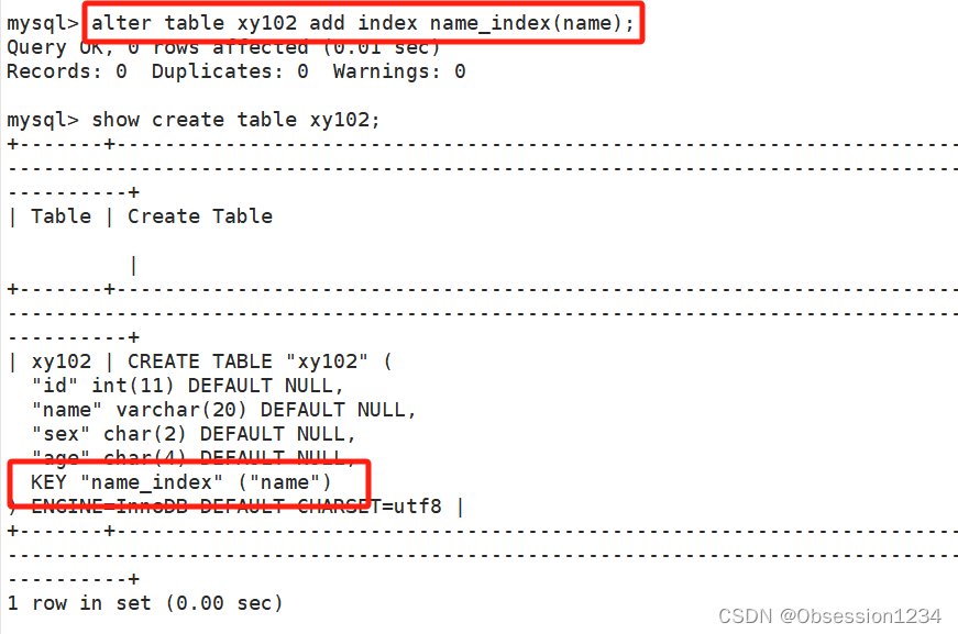 alter table 表名 add index 索引名(字段(长度)); #修改表创建