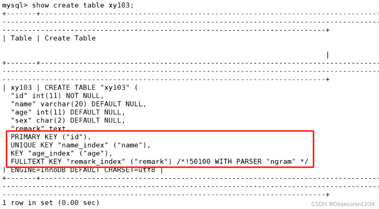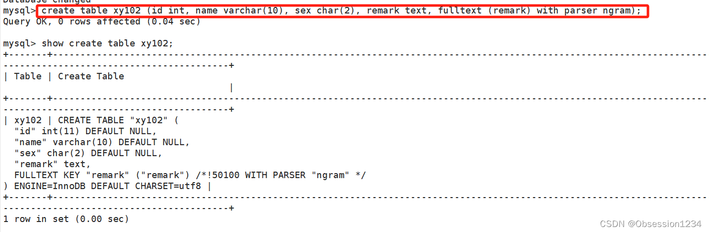 create table 表名 (.... , fulltext 索引名(字段) WITH PARSER ngram);
