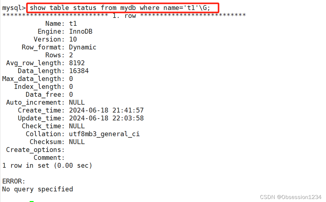 show table status from 库名 where name='表名'\G