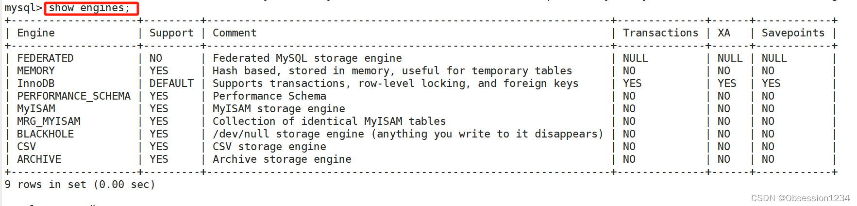 (1)查看存储引擎