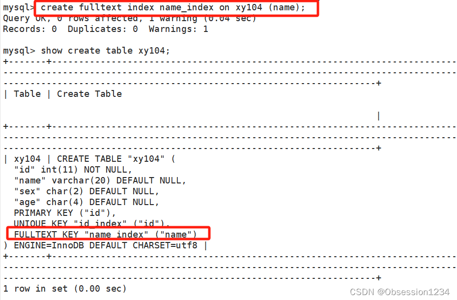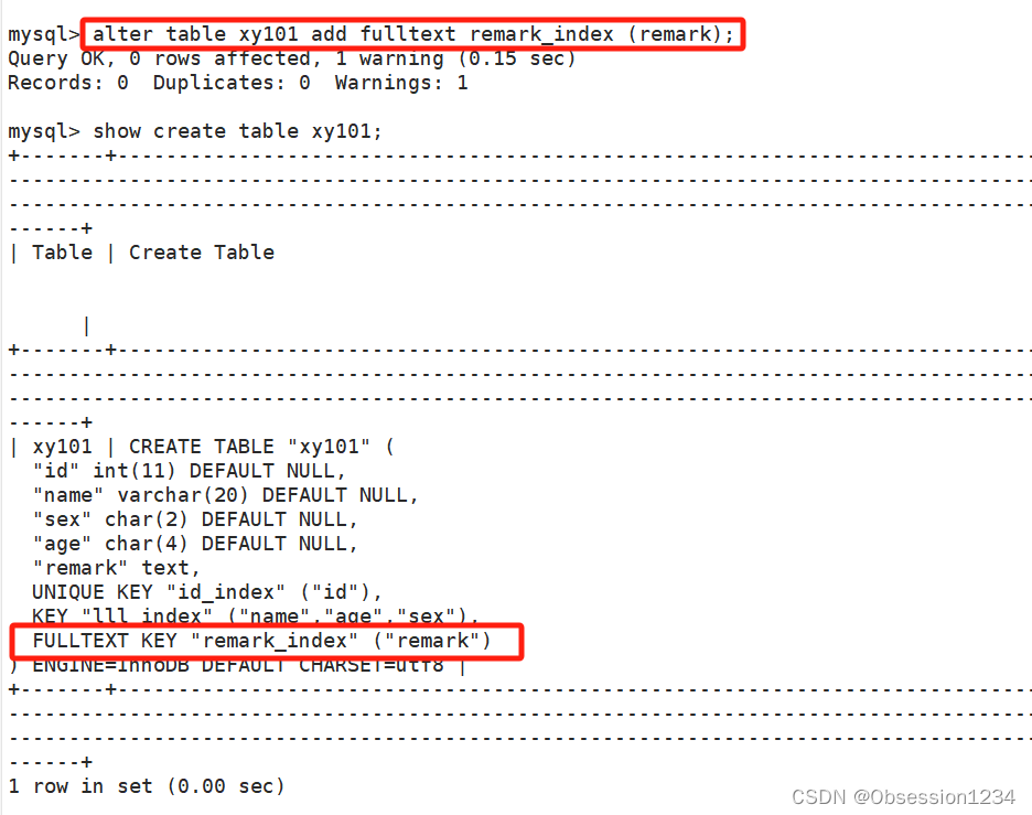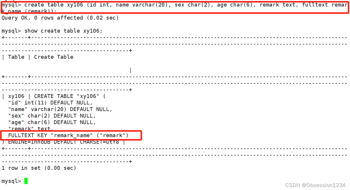 create table 表名 (.... , fulltext 索引名(字段));