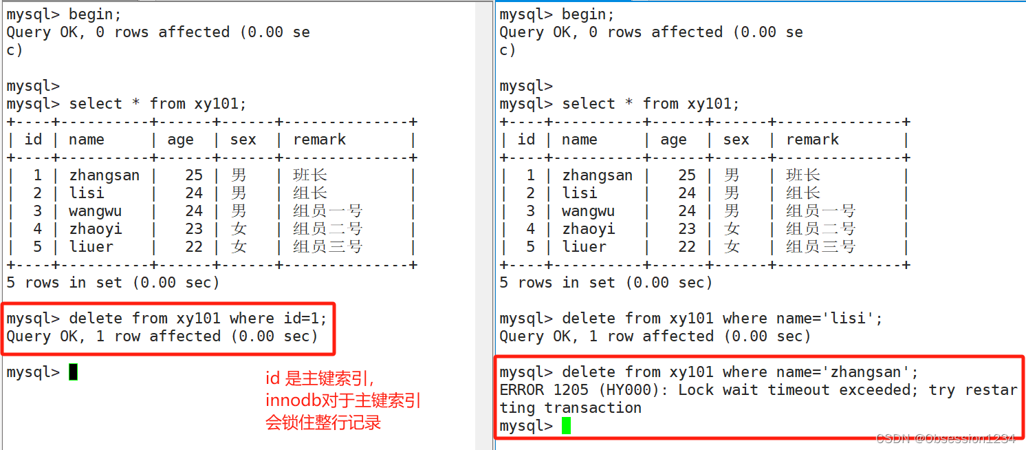 (1)如果id字段是主键,innodb对于主键索引,会直接锁住整行记录。