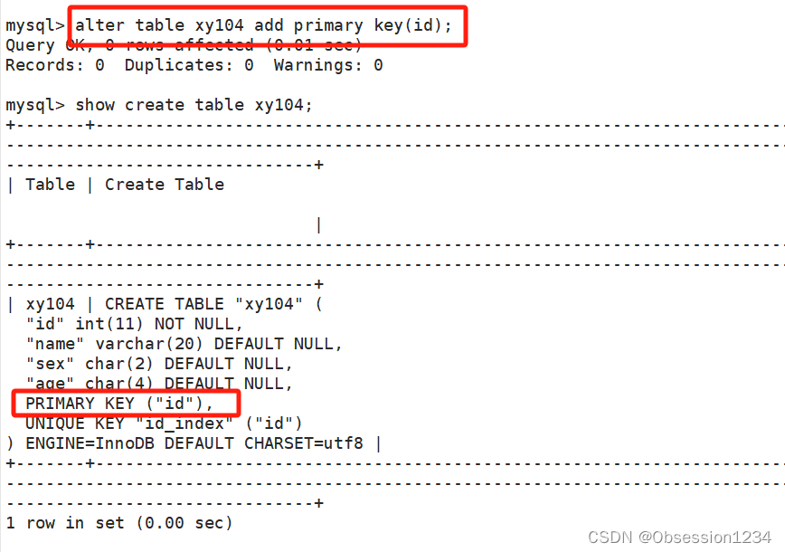 alter table 表名 add primary key(字段);