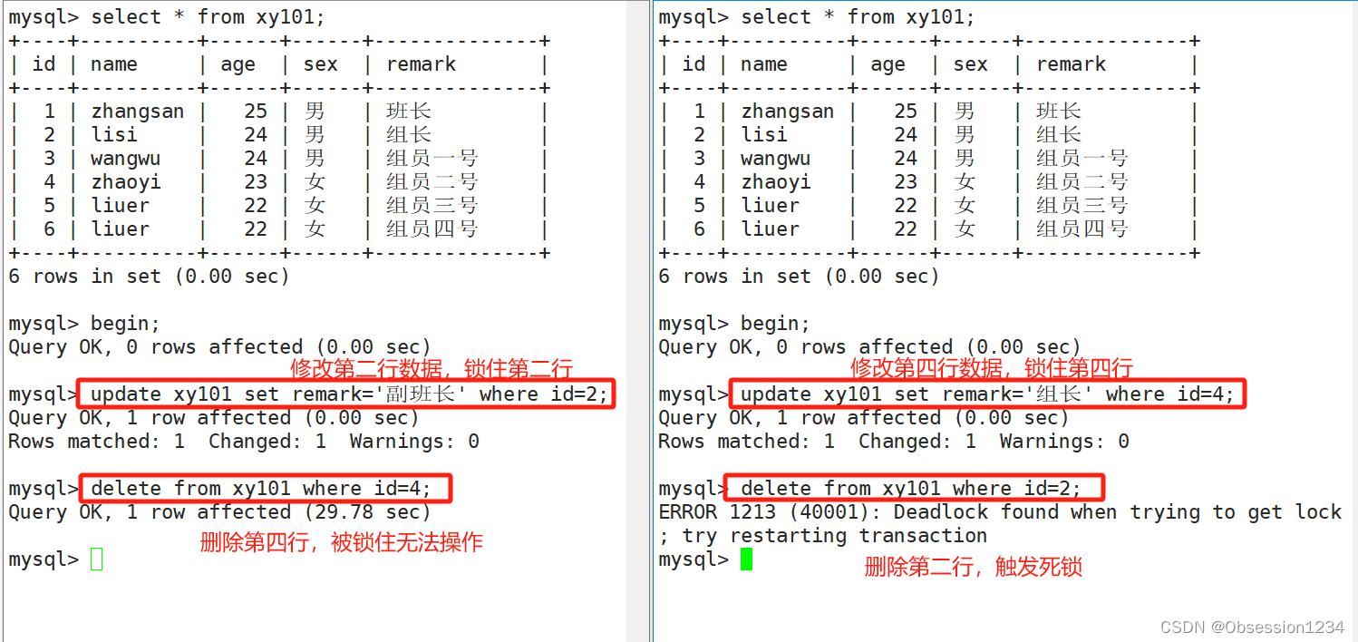 (2)主动开启死锁检测:当 innodb 检测发现死锁之后,就会进行回滚死锁的事物。