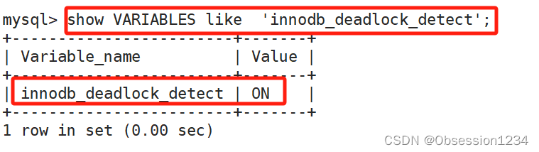 show VARIABLES like 'innodb_deadlock_detect'; #查看当前死锁检测是否开启