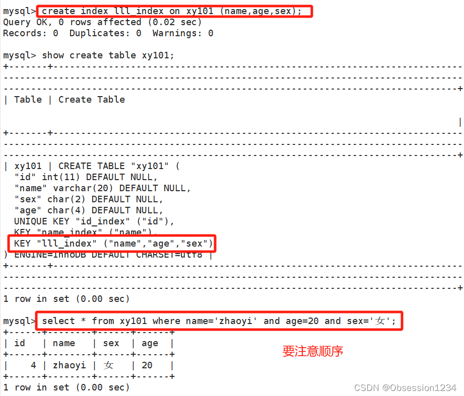 #查询语句使用 and 做逻辑运算符时,字段顺序要与创建多列索引的字段顺序一致(要满足最左原则)