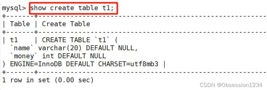 show create table 表名;