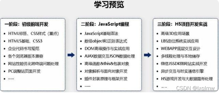 第一,用JS操作CSS和HTML。怎么操作?首先就是获取DOM节点,然后就是对DOM节点的“增删改查”,这就是具体的Java知识,这是硬指标,必须搞定。