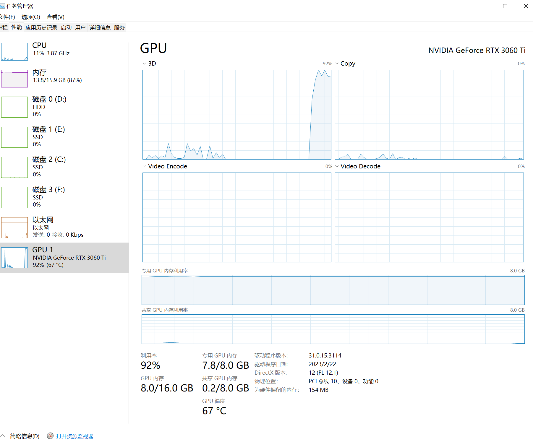 本电脑配置 16GB内存,RTX3060ti 8G ,AMD Ryzen 7 3700X 8-Core Processor