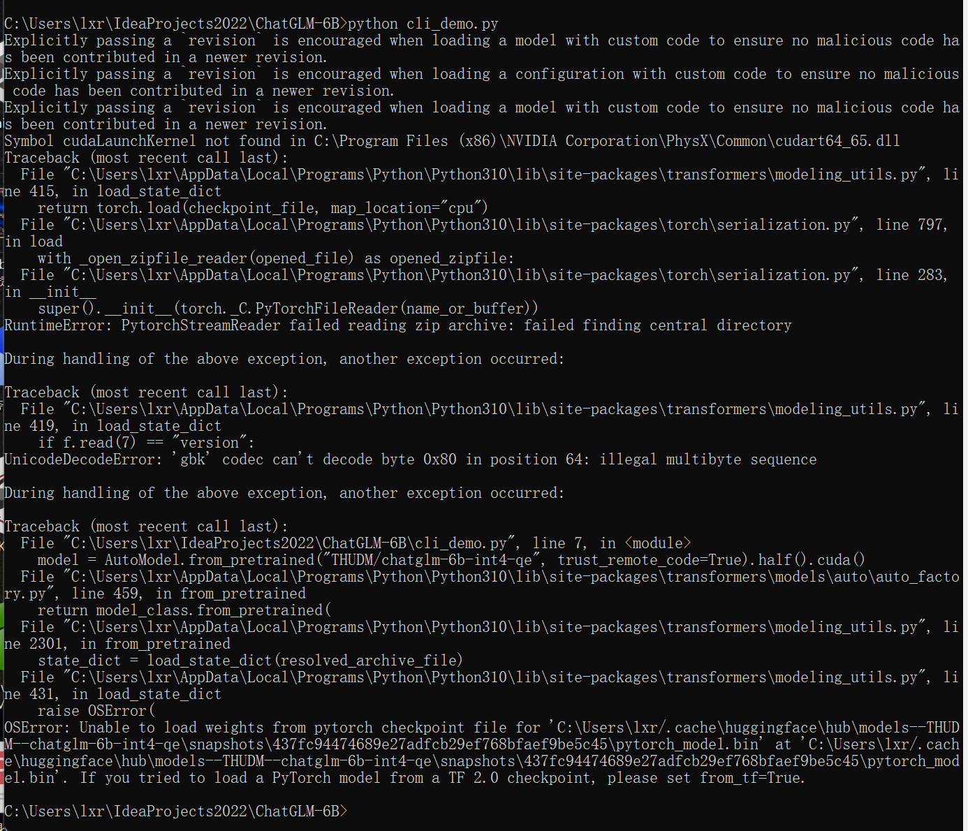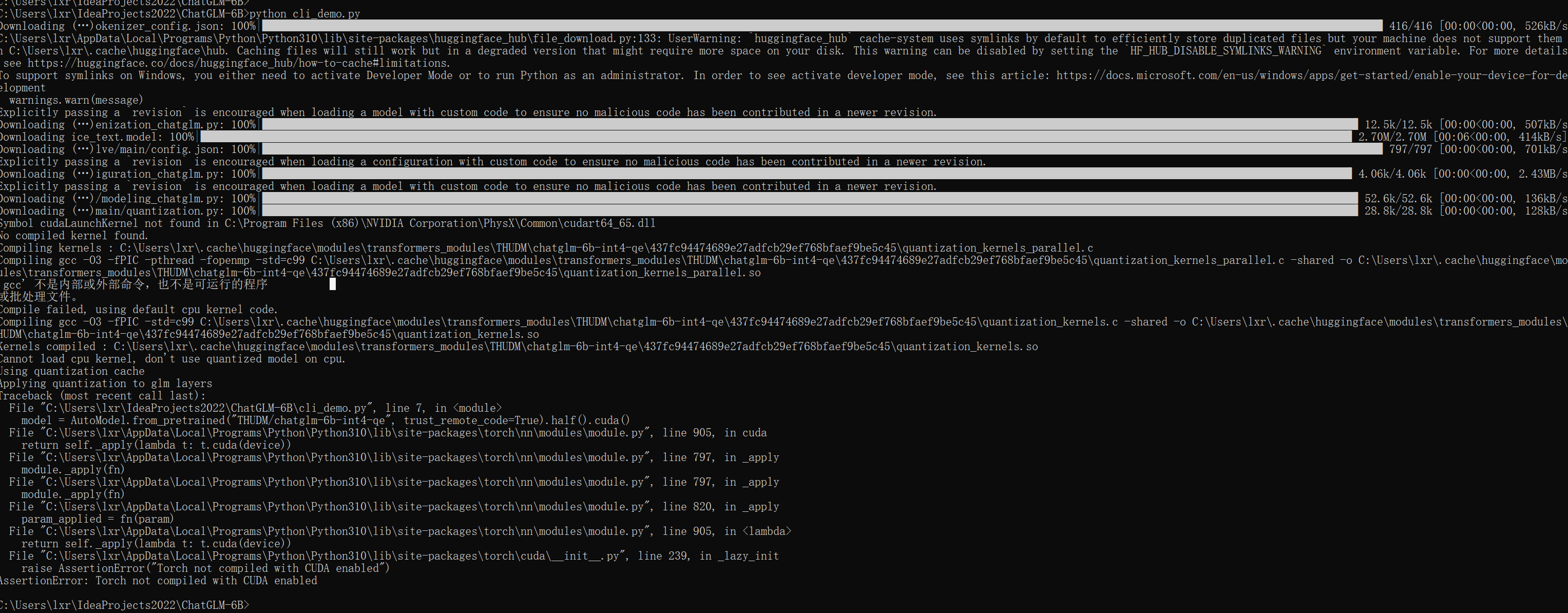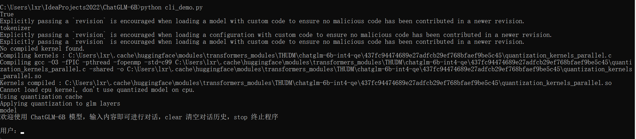 C:\Users\lxr\.cache\huggingface\hub\models--THUDM--chatglm-6b-int4-qe\snapshots\437fc94474689e27adfcb29ef768bfaef9be5c45