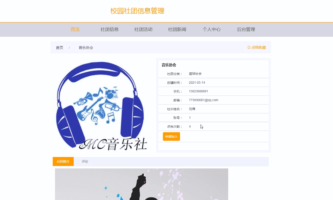 学生用户可以社团界面加入社团,等待社长审核。界面如下图所示:
