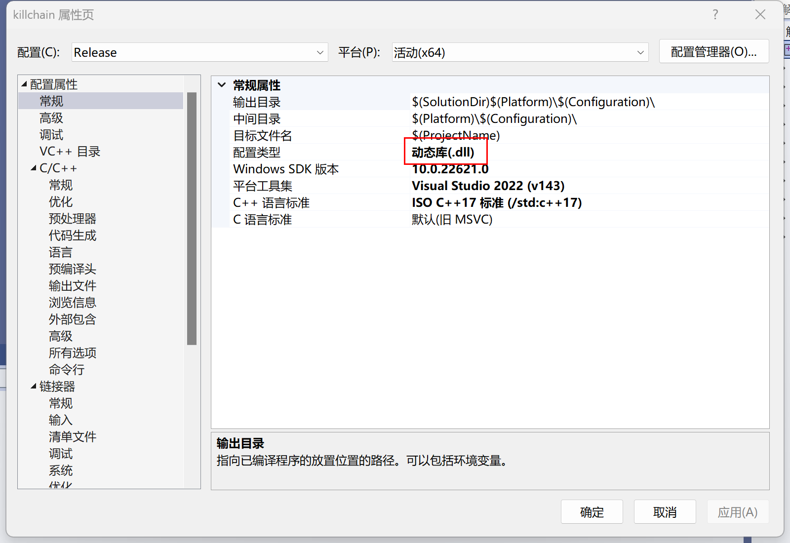 1,项目-属性-常规-配置类型-动态库(.dll)
