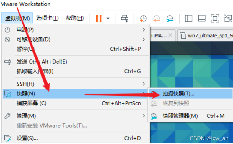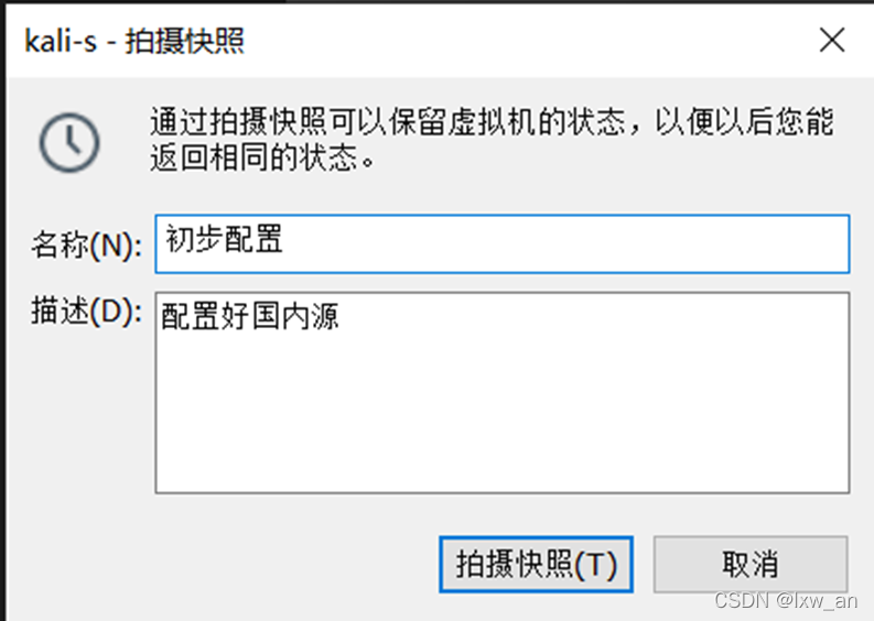 最后关机进行一个虚拟机快照,不关机会占用大量内存: