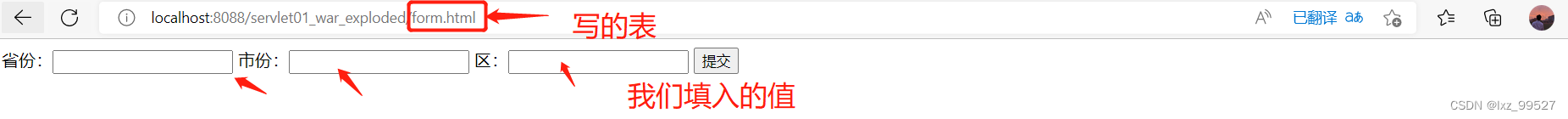 而访问servlet有请求的的就是动态资源。 下面如例。