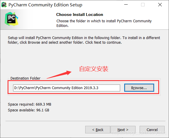 ②自定义安装路径,最好不要默认(默认即放到了C盘)。我放到了D盘。