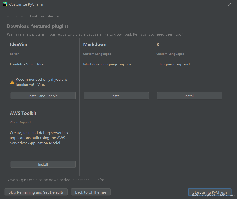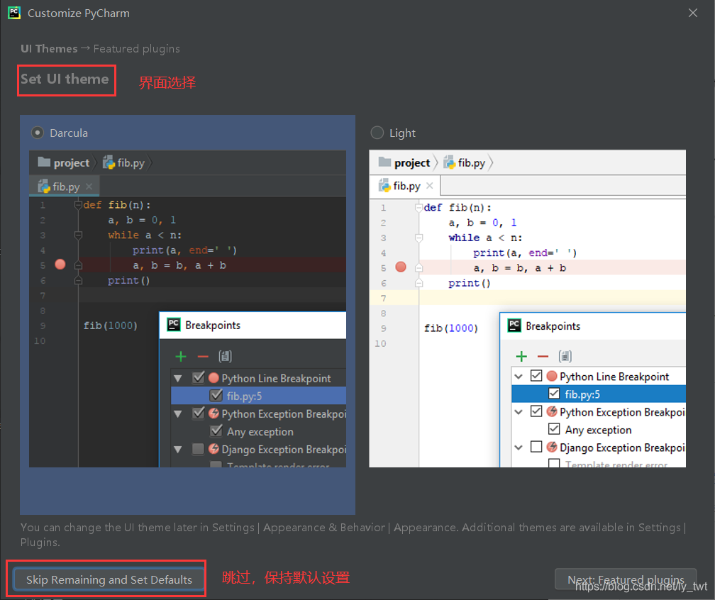 如果你之前使用过 pycharm 并有相关的配置文件,则在此处选择 “Config or installation folder”;如果没有,默认即可