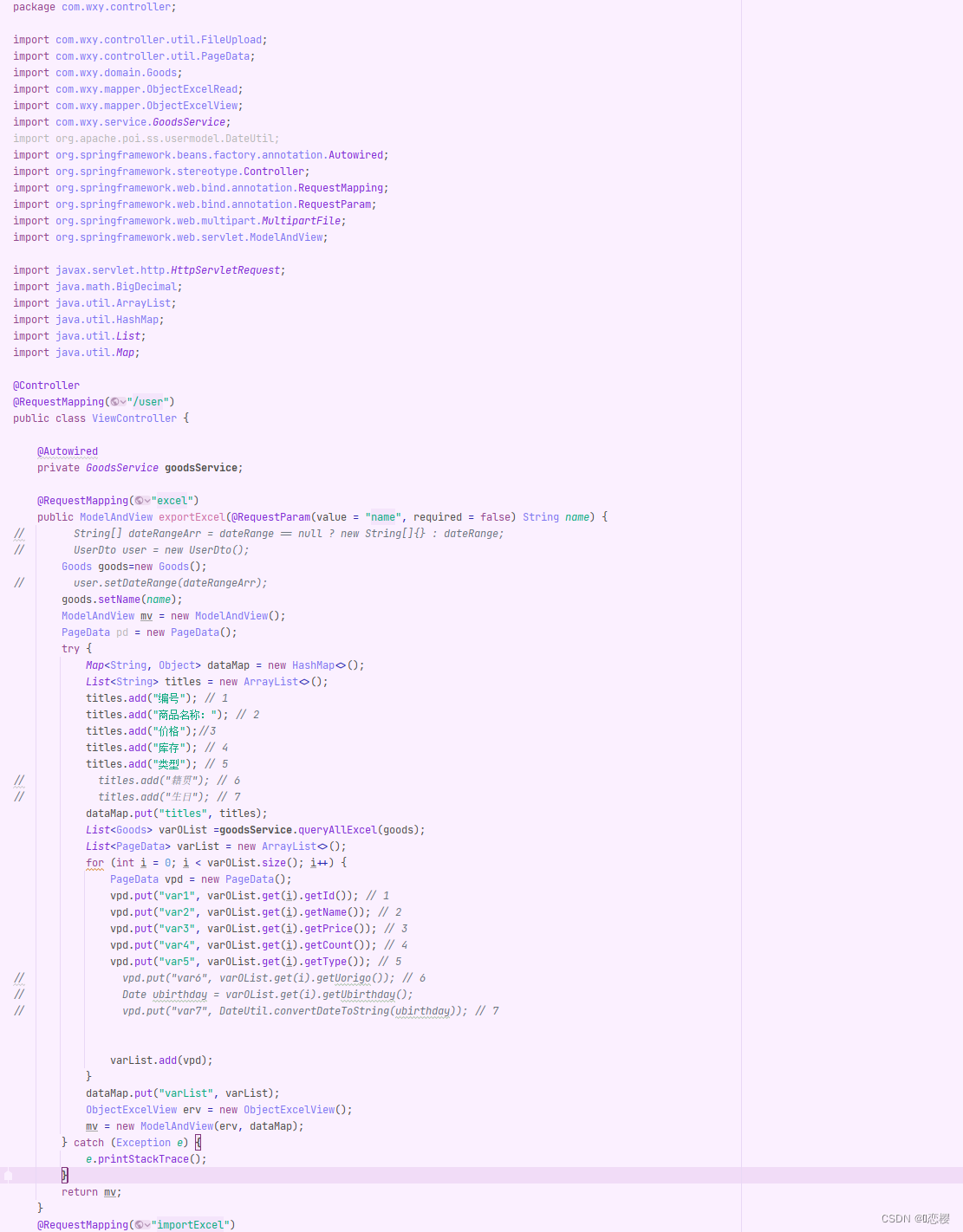 导入的控制类ObjectExcelRead