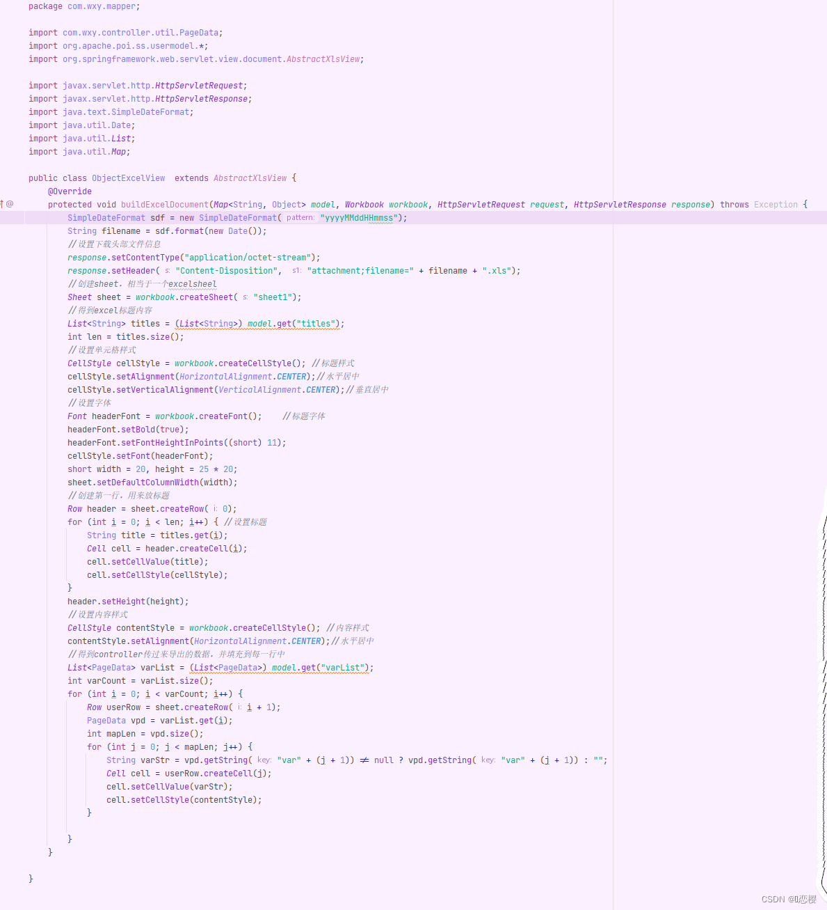 这里主要就是通过for循环将我们的数据循环到excel表格,注意这里put进去的key值,