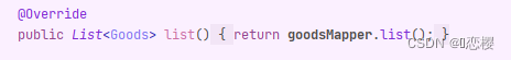 dao层的方法,复制到service 层,lmpl实现一下就行了,其实查询所有可以直接用mybatisplus自带的方法,我这里是和其他方法冲突了,所以新建了一个方法
