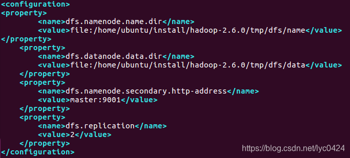<value>file:/home/ubuntu/install/hadoop-2.6.0/tmp/dfs/name</value>