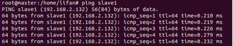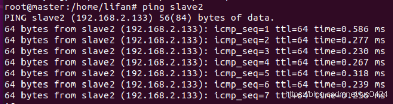 现在对slave机器进行ping通测试,看是否能测试成功。