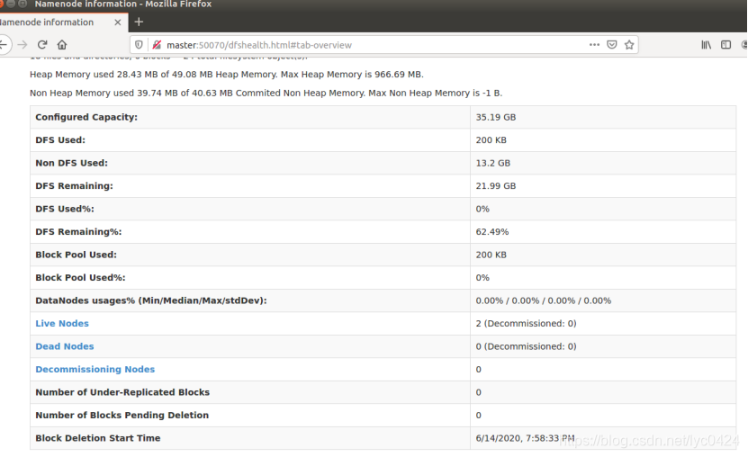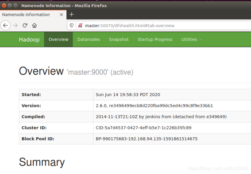 网页验证:在Master浏览器输入http://Master:50070/