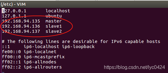 命令:vim /etc/hosts,添加结果如下: