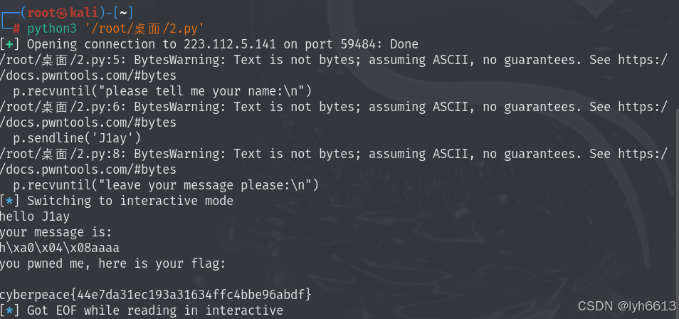 运行该文件我们发现它让我们输入名字和信息,然后再打印出来,然后退出结束。