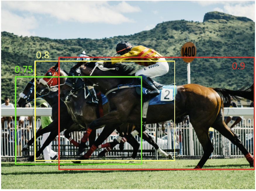 这里的主要挑战是,如果这些物体靠的很近,其中一个将被过滤掉(因为IoU将相当高)。
