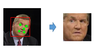 这五个点之外的其他点的图象,可以认为它是做一个类似于插值的运算,然后把它贴到那个位置去,做完了以后,就可以送到后面的人脸识别器里面去做识别了。这个是一般的做法,还有更前沿的做法,有的研究机构在使用所谓的3D人脸对齐,就是我告诉你说一张正脸是什么样子的,比如旋转45度的时候长什么样子,那么用这种图给他训练过了以后,他就知道我看到一张向左右旋转了45度这张图,大概转正了以后有很大可能性是什么样子的,这个模型能去猜。