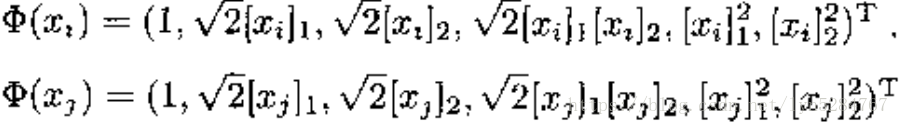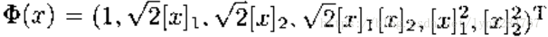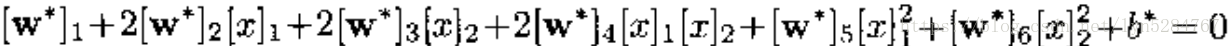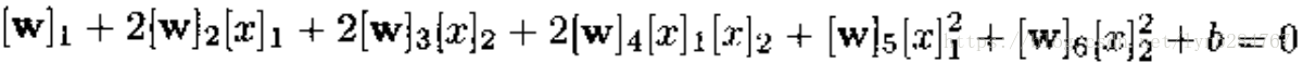 通过变换函数,将二次曲线映射到六维空间的超平面: